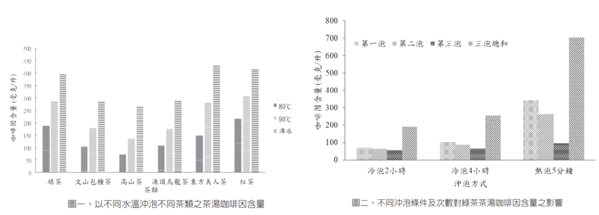 另外,臺灣行政院農委會研究顯示,咖啡因含量與茶葉沖泡時的溫度呈現正相關,沖泡溫度越低,咖啡因含量也越低,因此容易胃酸逆流或者有失眠問題的人,比起熱泡茶更適合飲用冷泡茶。